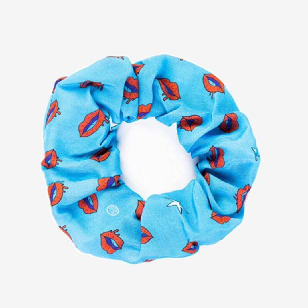 Γυναικείο,παιδικό,εφηβικό scrunchie γαλαζιο με red lips & stars pattern
